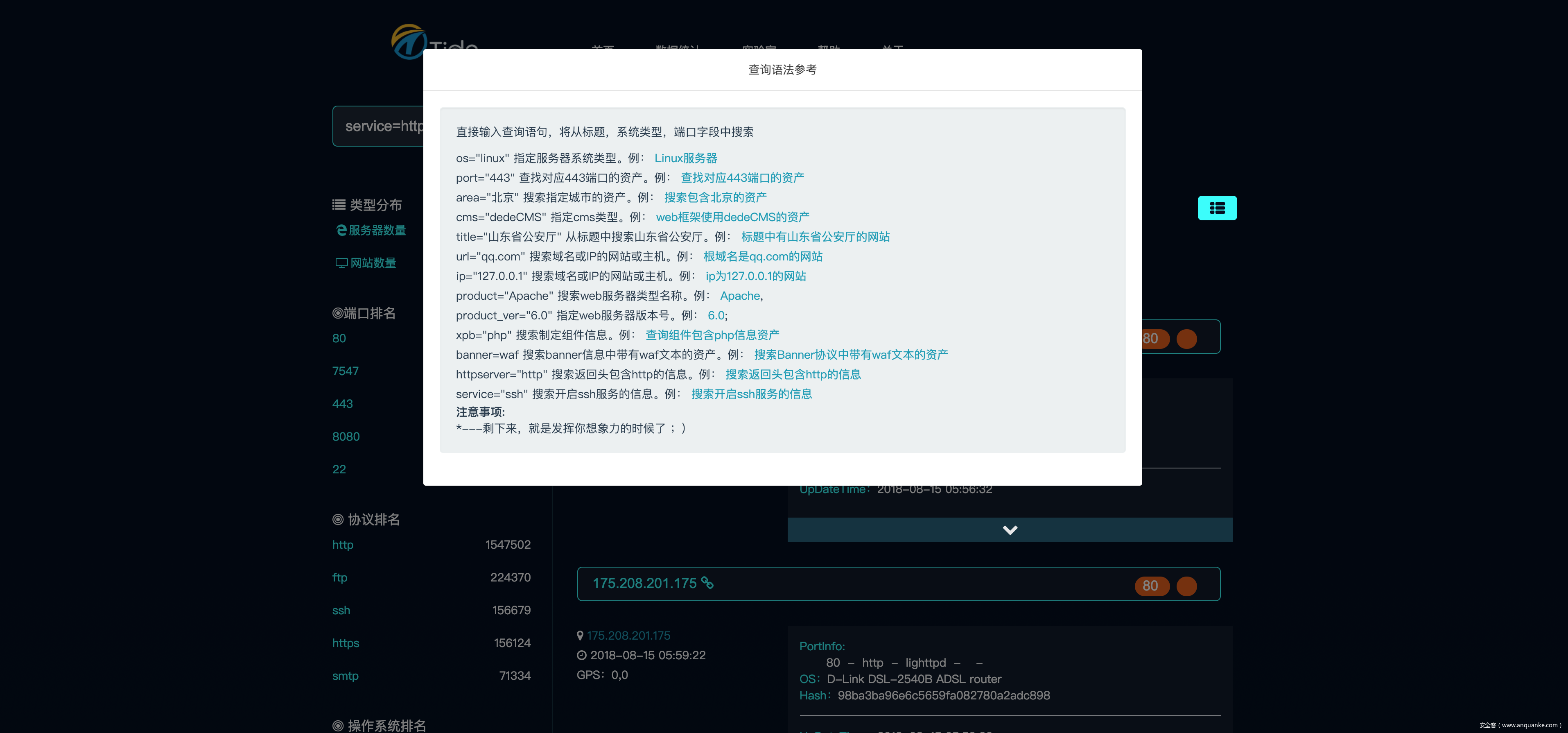 在这里和大家分享一下Tide在空间测绘方面实现的一些方法和技巧,虽然和zoomeye、fofa没什么可比性,但平台整体成本比较低,比较适用于小团队开发运作