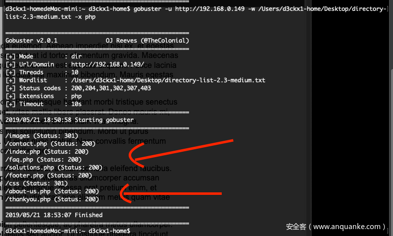 可以看到非常简单的几个页面,还是一样用目录拆解工具跑一波,小弟这里使用的是gobuster