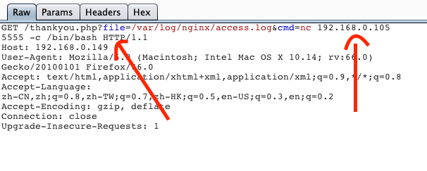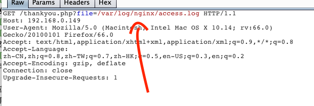 通过第一步的端口探测中可以看到,该web服务使用的是nginx服务,大家都知道我们在网站上的每一步操作都是会被写入log文件内的,那么我们就可以通过log来拿 shell,