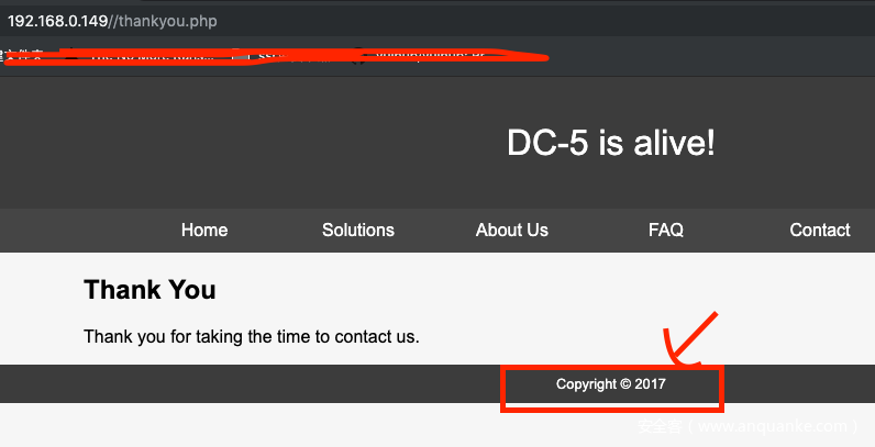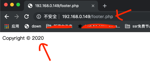 小弟刚开始的时候就草草的看了一下,但是没发现什么,就把目光盯在111端口的 rpc服务上了,以为靶机是通过挂在盘解的,然后试了一下看了一下感觉不对,没什么进展。然后又重新跑了一遍目录,重新开始查看跑出来的结果,查看 /footer.php,如图