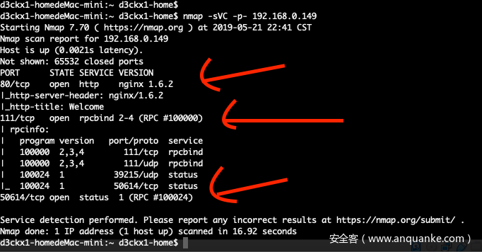 可以看到靶机开放了3个端口,分别是 80、111、50614