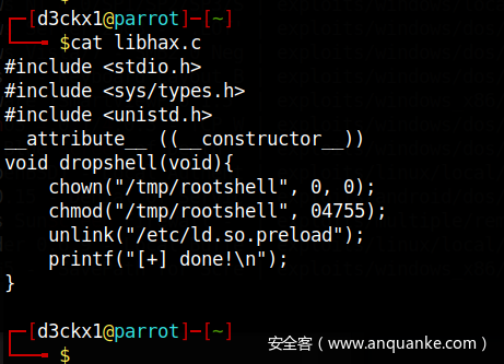 “gcc -fPIC -shared -ldl -o /tmp/libhax.so /tmp/libhax.c”