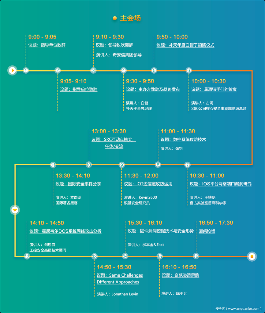 相比前三届补天白帽大会,今年在议题中,会更加深入探讨系统、IOT、工控、移动等4类漏洞技术议题。届时,盘古实验室首席科学家王铁磊、独立安全研究员kevin2600、iOS和MacOS领域专家jonathanlevin等业内大咖将现身会场,就漏洞技术和具体安全事件进行分享。