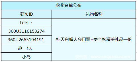 请获奖同学及时查看官方私信哦~有问题可以添加安全客官方客服QQ:2131772936 咨询~