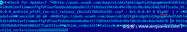 首先,应用会向puds.ucweb.com/upgrade/index.xhtml发送一个POST请求,然后下载经过压缩的一个库,该库可以查看PDF文件以及Office文档。从逻辑上讲,我们可以假设第一个请求发送的是关于系统的一些信息(至少包含架构信息,因为服务端需要选择匹配的库),然后服务端会返回待下载库的某些信息,比如下载地址等。这里问题在于该请求经过加密处理。