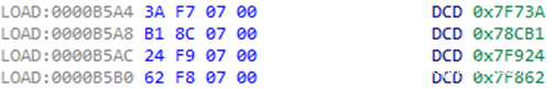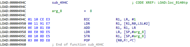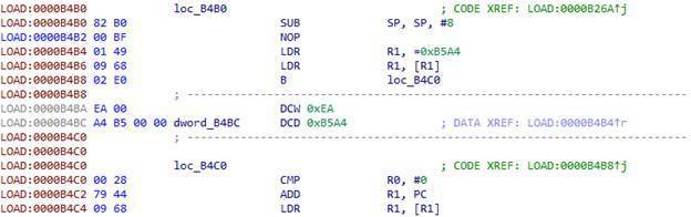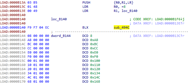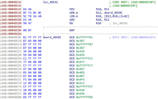 转到第一个地址后,我们使用来自R4的第二个索引。该表中包含230个元素。