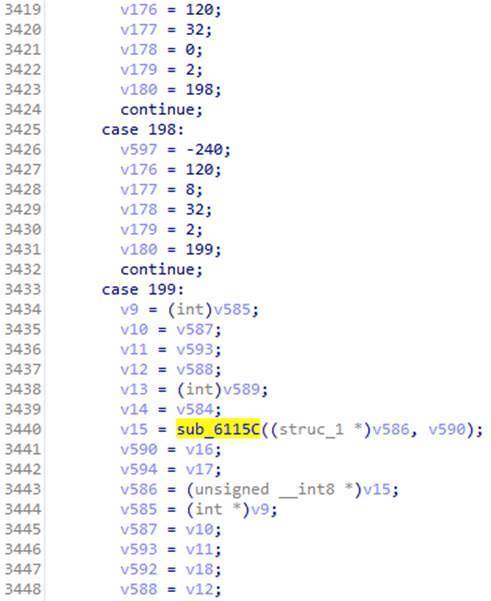 生成的代码比较庞大,然而我们可以看到其中又调用了熟悉的sub_6115C函数: