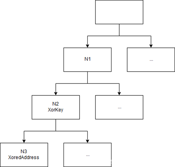 这棵树会在JNI_OnLoad中动态创建,其中3个子编号共同编码了整棵树的路径。树中每个节点都包含相应函数经过异或处理后的地址,秘钥位于父节点中。如果我们理解了所有这些结构,那么想在代码中查找我们需要的函数是否被添加到这棵树中是非常简单的一件事(本文不会专门描述这方面内容)。
