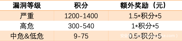 注:数量不限;若当季度没有高量漏洞,那么该奖励可以为空。