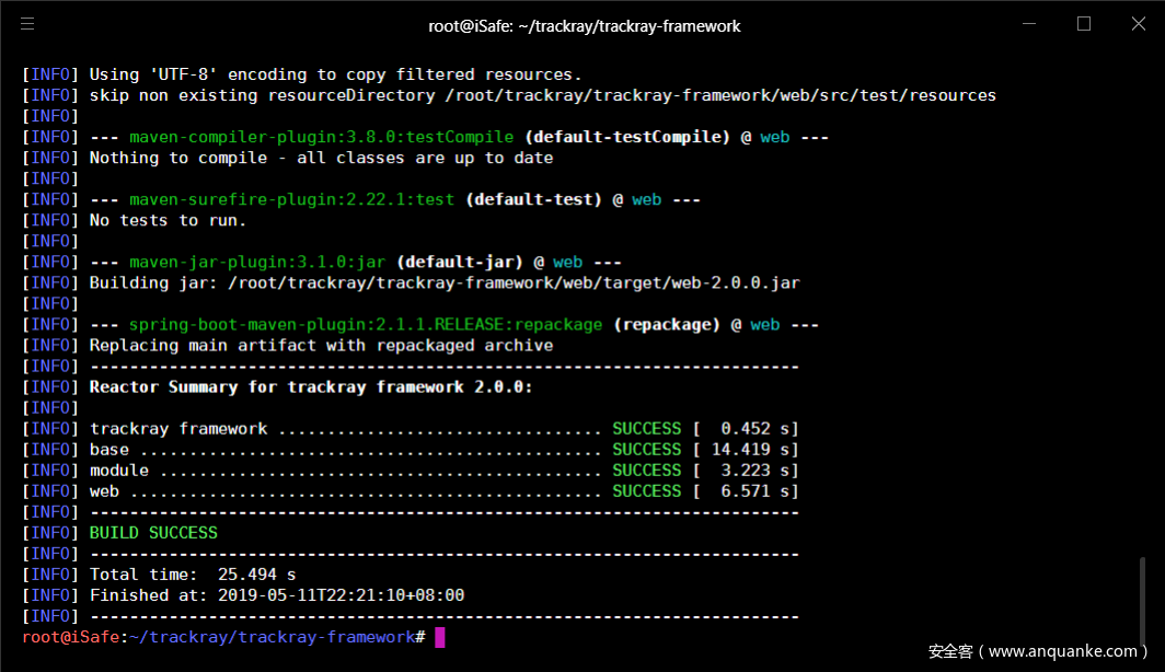 编译成功后会在当前目录打包一个trackray.jar就是溯光的主程序。
