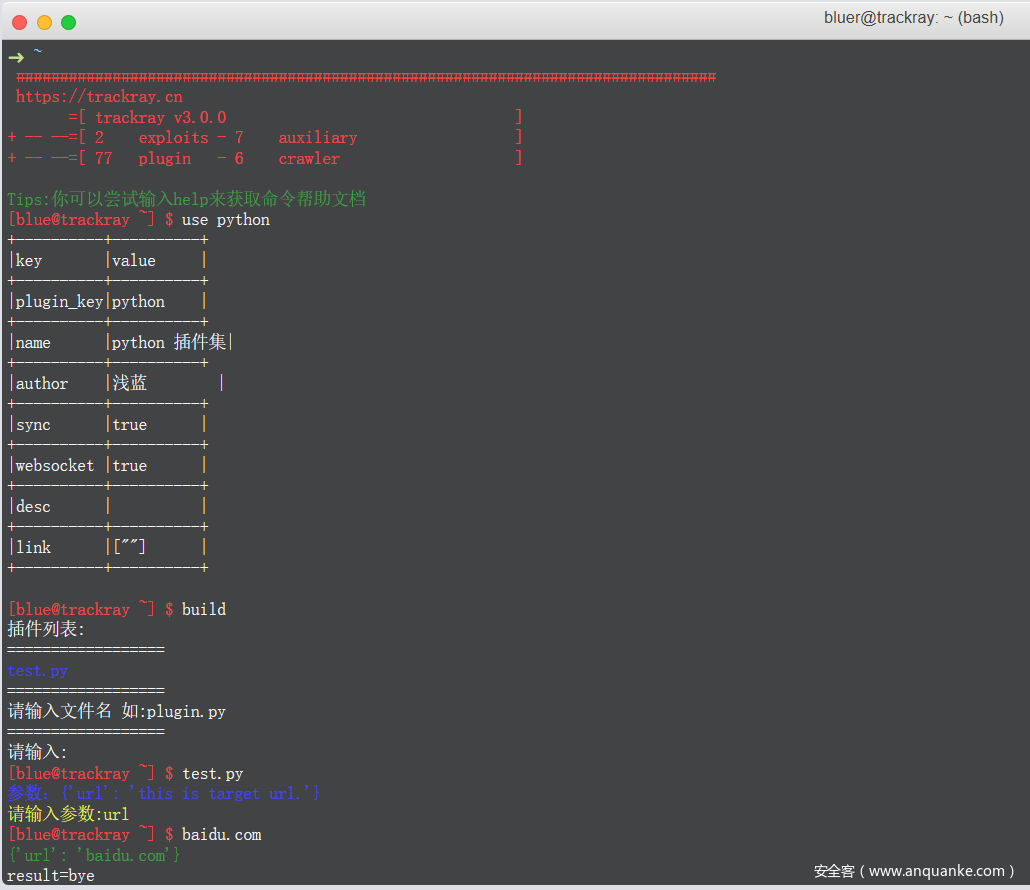 框架可扩展性高,支持 Java、Python、JSON 等方式编写插件,有“漏洞扫描插件”、“爬虫插件”、“MVC插件”、“内部插件”、“无交互插件”和“可交互插件” 等插件类型。