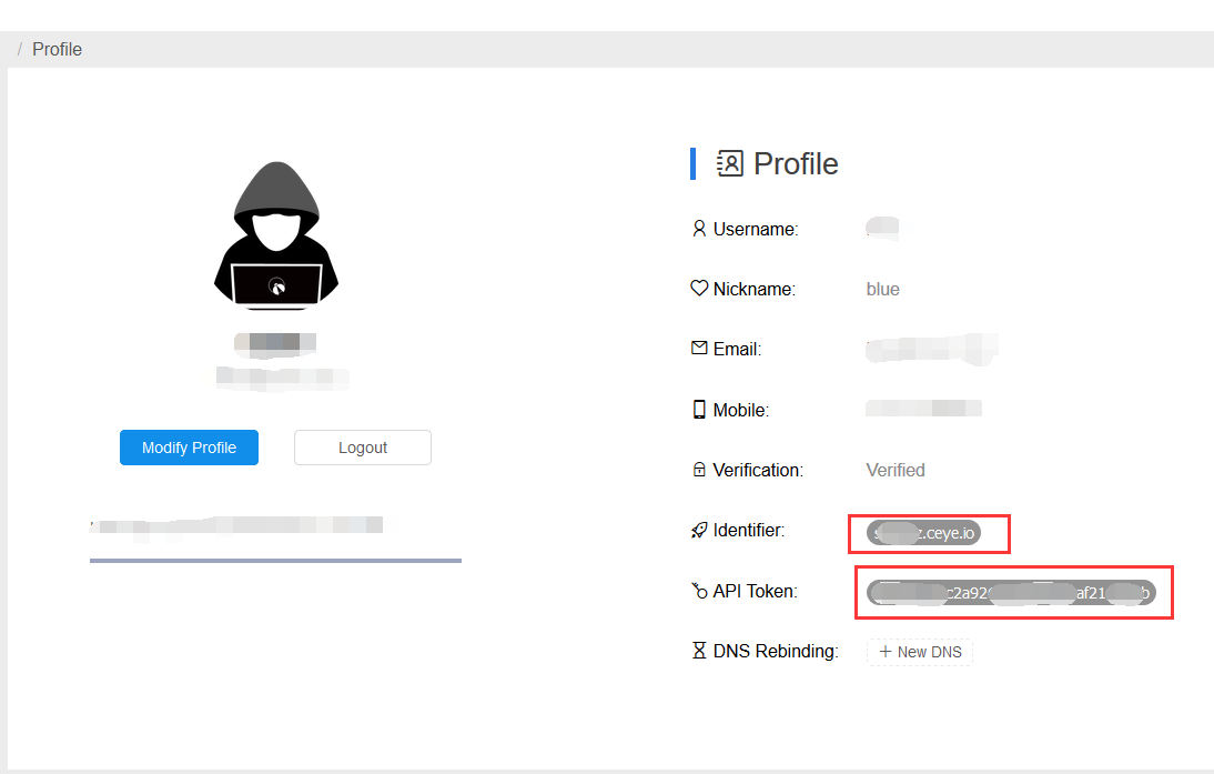 去 ceye.io 注册一个账号,拿到给你分配的域名和 TOKEN。