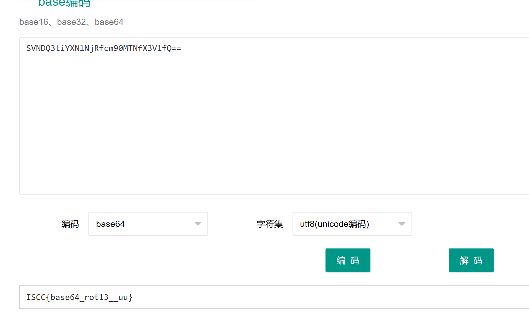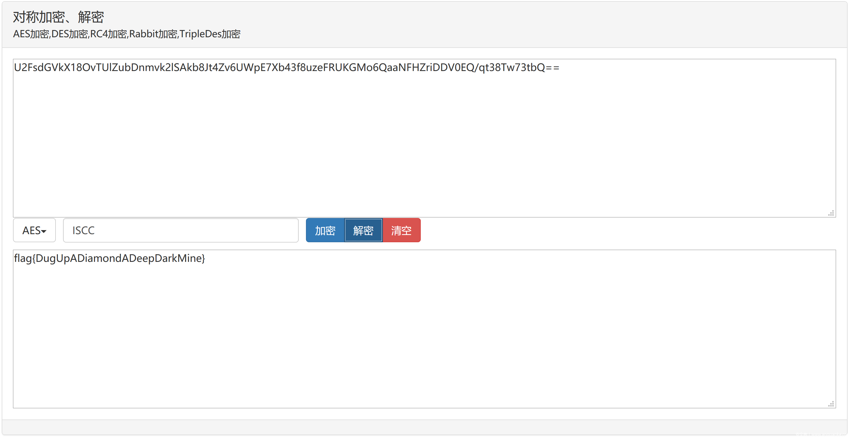 推测ISCC是密钥,通过两次AES解密(https://www.bejson.com/enc/aesdes/)