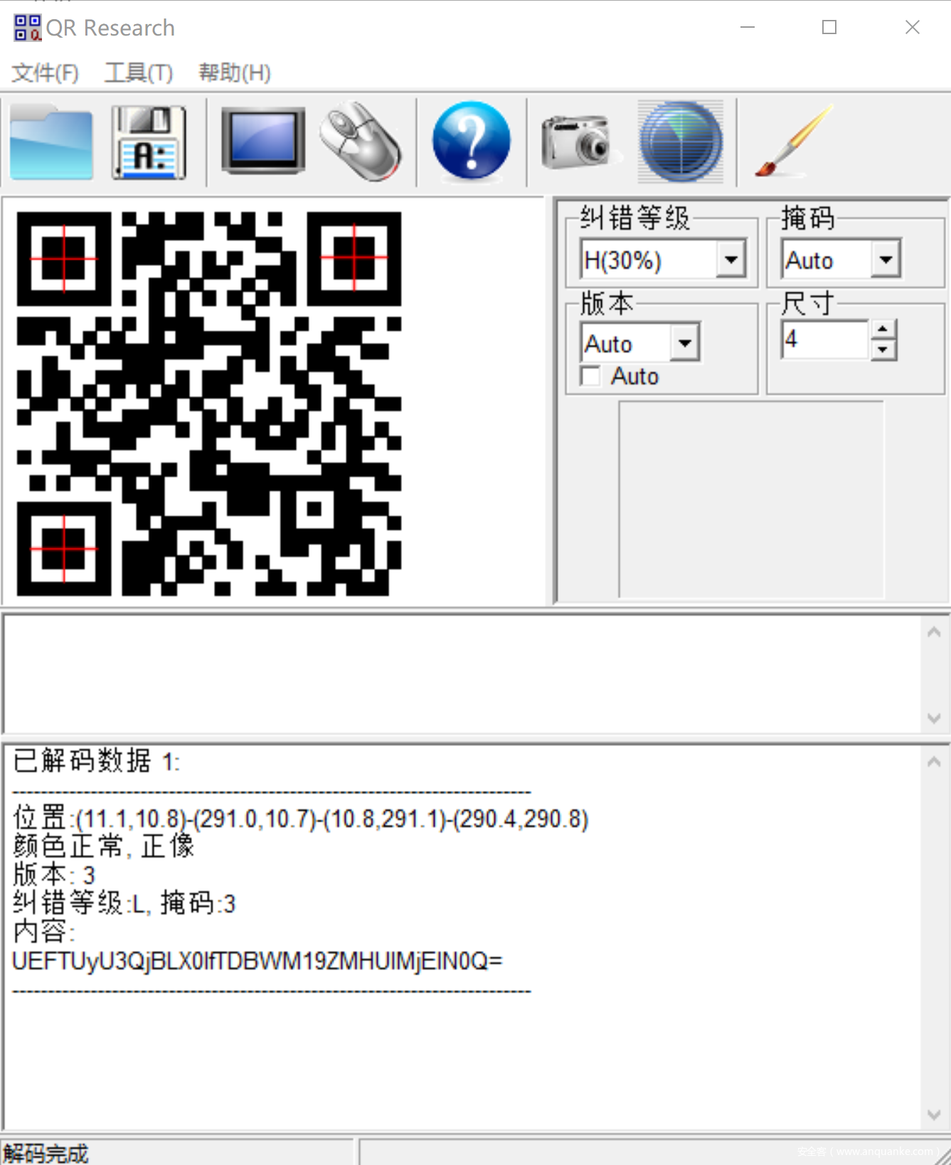 解压缩拿到一个二维码图片,扫码后拿到一串当铺密码,在线工具解码拿到一串数字。