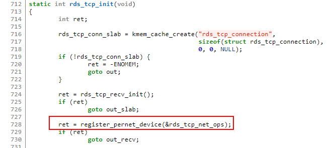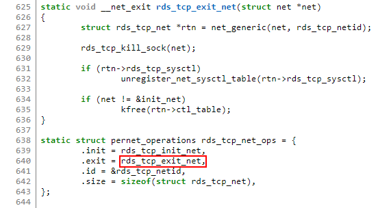 图5. rds_tcp_exit_net()为网络命名空间设备的退出函数