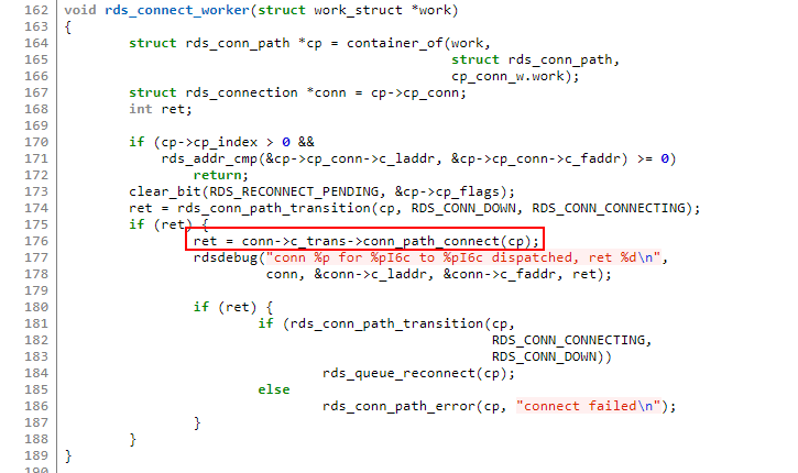 图1. threads.c中的rds_connect_worker()调用rds_tcp_conn_path_connect()