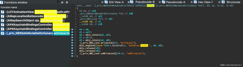 [_priv_NBSSafeMutableDictionary setValue:forKey:]查看该类发现无结果,返回上一步重新查看加密所在的类