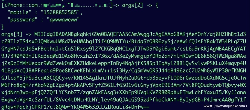 ios hooking watch method “+[RSA encryptString:privateKey:]” –dump-args