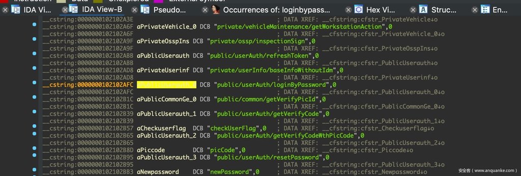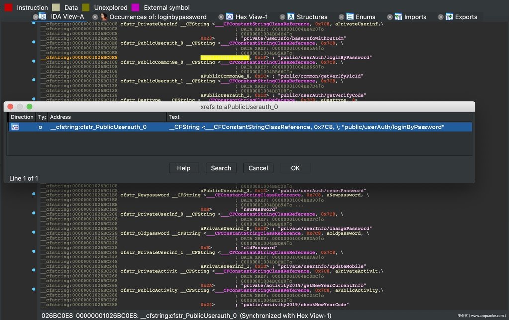 然后在String窗口搜索loginbypassword(这个是登录时的信息),搜索后进入对应的类,接下来我们进入这个类看它用了哪些方法
