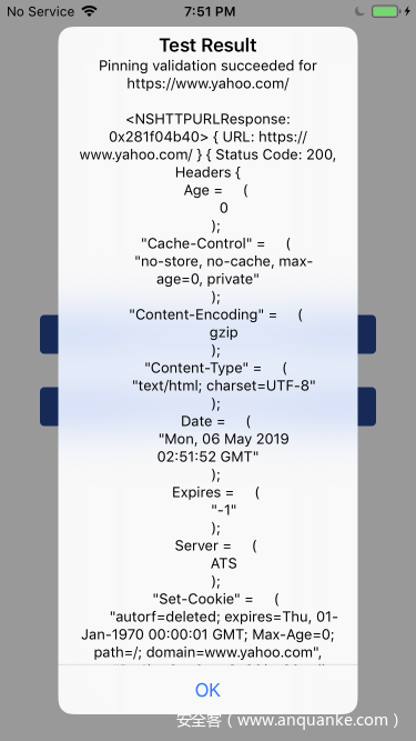 与我们预期的一样,测试应用中负责pinning验证的委派方法的确会被调用: