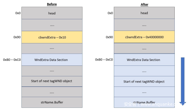 根据我们的观察,攻击者如果想实现Chrome沙盒逃逸的话,他们还需要使用更加强大的写入原语。因此,这里可以使用限制写入原语和tagWND对象来实现更加强大的写入原语。