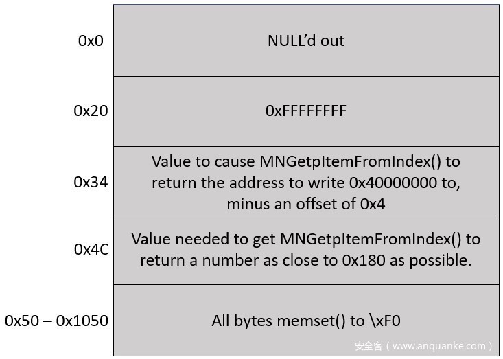 xxxMNSetGapState()会向攻击者控制的位置(偏移量+4)执行两次写入操作,这两次的区别是数据写入的位置比之前的靠前了0x6C字节。而且,写入使用的是OR操作,这也就意味着攻击者只需要向DWORD值中添加bit即可,而且无法删除或修改之前的位数据。