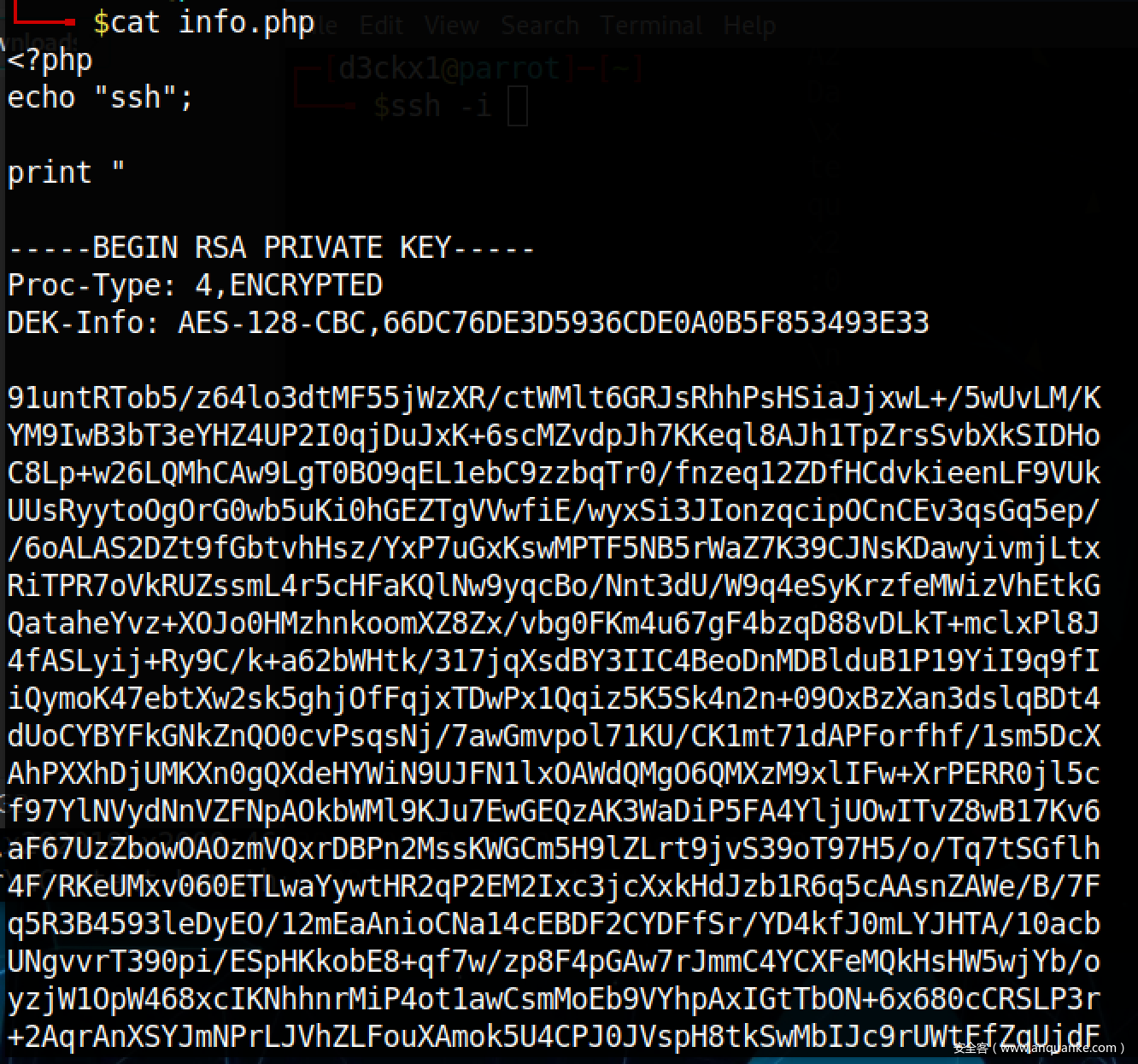 如上图中可以看到,该php里是有一个ssh的key文件,我这里单独保存出来