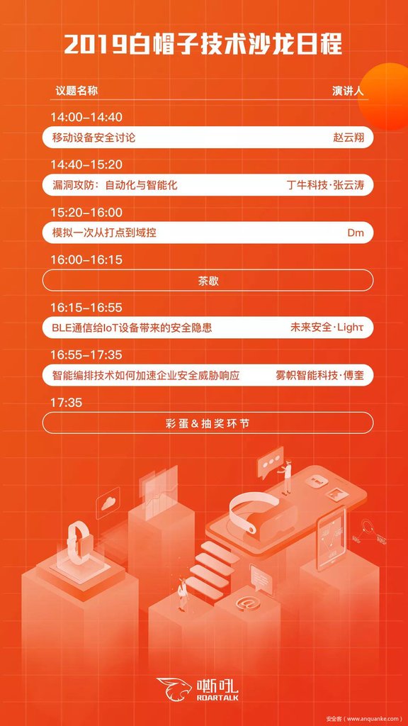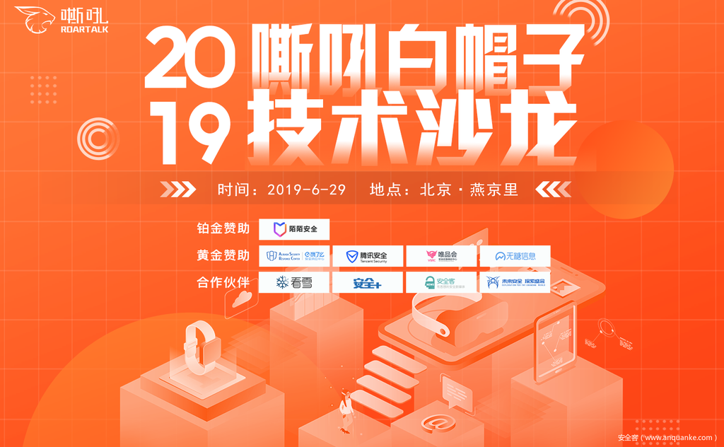 这是一次行业顶尖技术的学习之旅;这是一场大咖云集引领行业的盛宴;这是一个安全人才结识的神圣之地。2019嘶吼白帽子沙龙将于6月29日下午在北京燕京里隆重举办。届时嘶吼将邀请众多一线白帽子与业内知名大咖,共同学习、探讨及分享行业前沿技术。