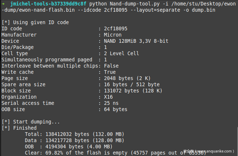 研究受阻后,我剥离出NAND Flash,将其与DATAMAN读取器连接。几分钟后,我成功导出了Flash。为了确保数据准确,我执行了两次导出操作,两次导出结果都比较理想。