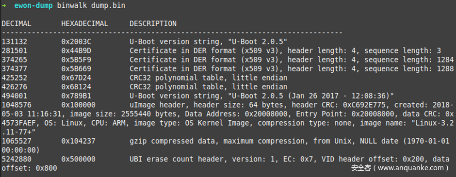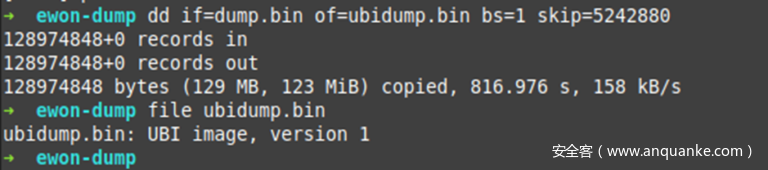 文件中有许多有趣的点。首先来看一下UBI。我们使用DD从dump.bin文件中提取这部分数据: