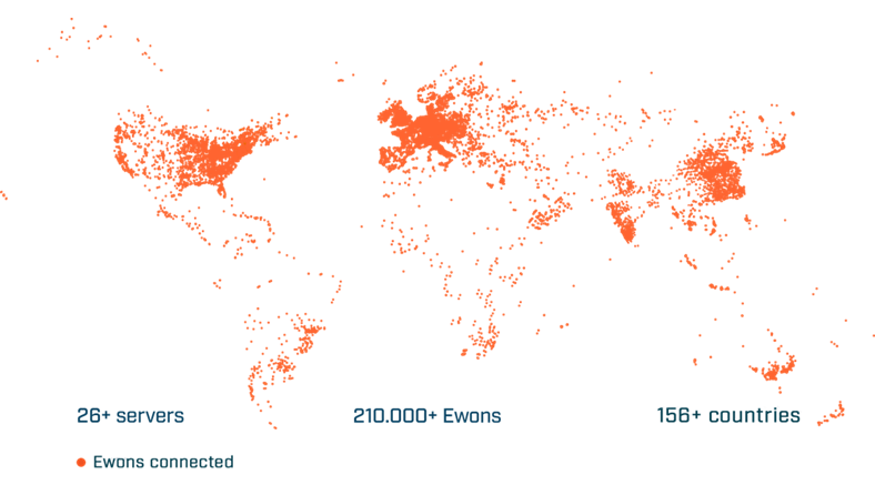 这些设备的分布范围非常广泛,根据Ewon的官方描述,这些设备在全球的部署情况如下图所示:
