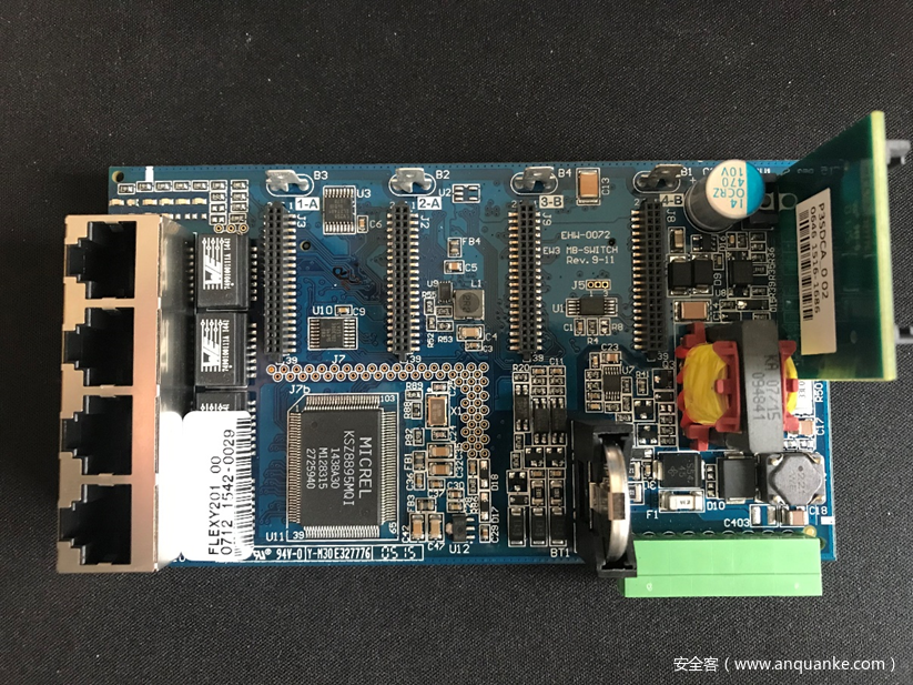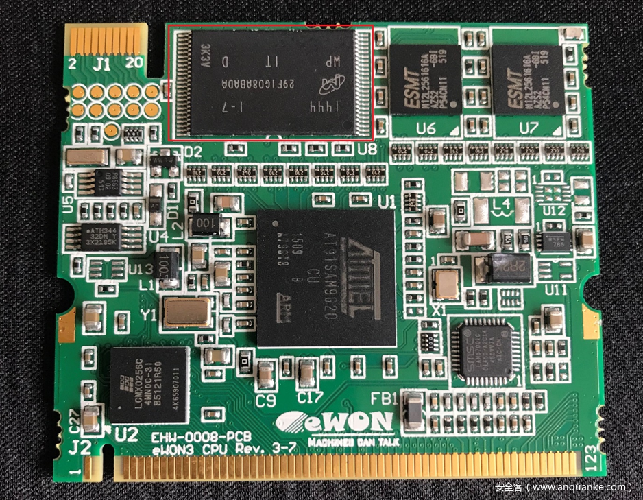 拆解Ewon Flexy设备,将主板剥离出来。这看上去是外围板/子板的一个单控制器,背面插着一个OS板。