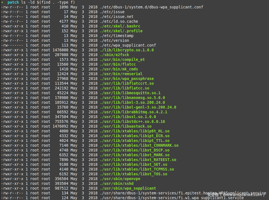 我提取出的大多数文件目录都为空,除了bin/及patch/目录,其中包含一些有价值的信息。patch/目录如下: