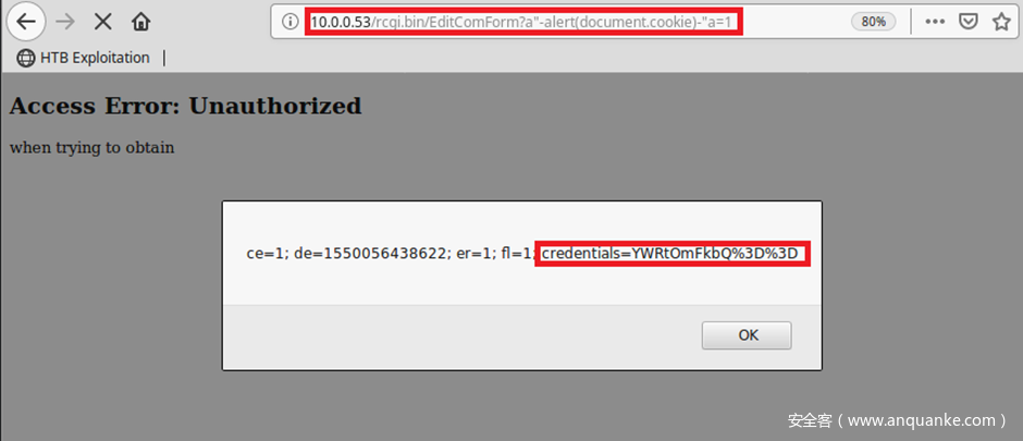 由于基本认证的base64 cookie比较脆弱,因此,这里我们可以窃取一些凭据信息。