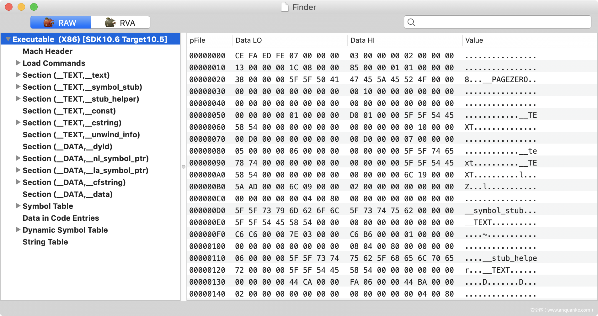 $ otool -l Finder.app/Contents/MacOS/Finder