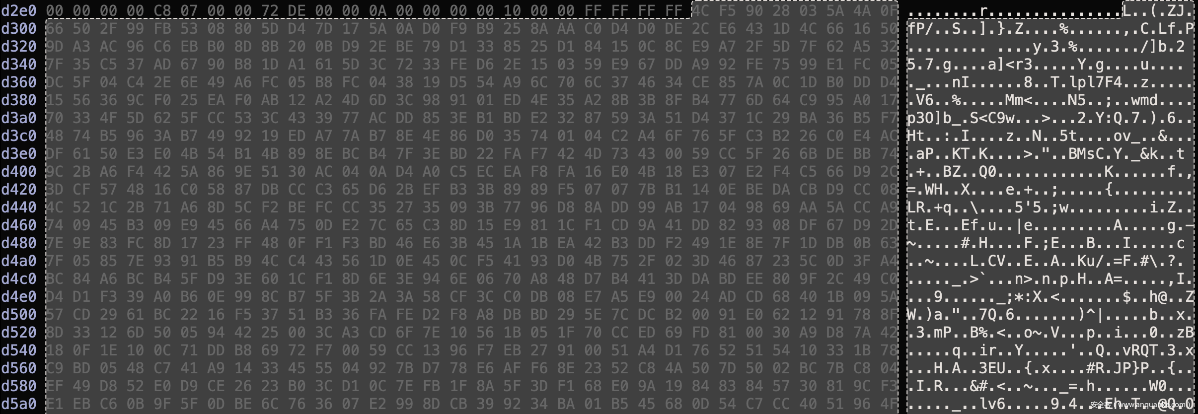 在分析恶意软件片段时,导出其中包含的字符串总归是不错的一种思路(通常我们可以获得关于恶意软件功能的一些有价值信息)。我们可以使用系统内置的Strings工具(加上-a参数),从程序文件中提取所有可打印的(ascii)字符串: