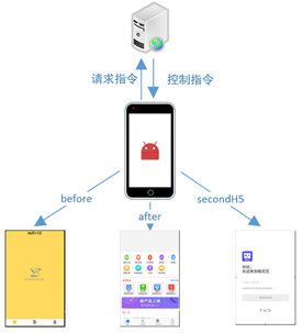 “变脸”应用如果接收到的指令为“secondH5”,展示的内容则是HTML5页面。HTML5地址在访问服务器后返回的数据中,该数据由服务器使用者控制,具有不确定性。在分析“变脸”应用的过程中,我们实现将服务器返回的HTML5地址进行修改,替换成如下图所示内容。因“变脸”应用可能加载任意HTML5页面,用户使用过程中的风险性也就增加。