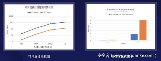 不到 20s 就可以完成百万节点构图,对于1亿节点,5亿边规模的数据,在10个 worker上构图时间只需要150s。在读的性能上,测试了子图采样的性能,在这项指标上,极验将时间控制在100ms之下, 达到这样的效率,显卡就不会出现计算延时的情况。
