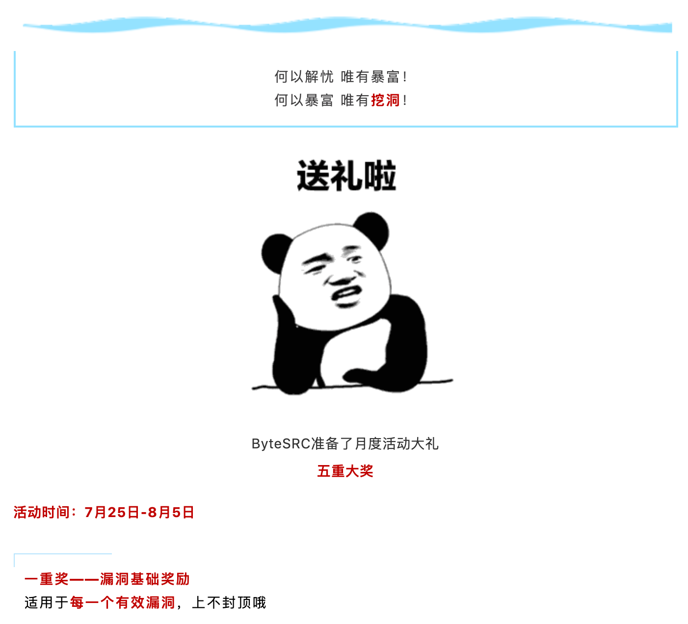 ByteSRC活动来袭,单个漏洞可达1.6W,并有3倍积分翻倍卡、国外产品众测邀请资格等待赢取~