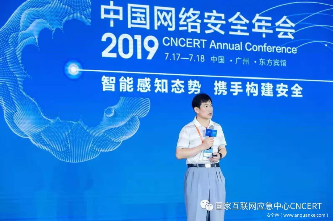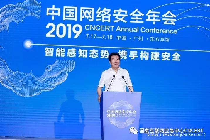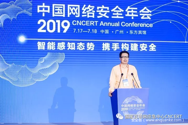 2019年7月17日,以“智能感知态势 携手构建安全”为主题的2019中国网络安全年会在广州召开。本次大会由国家互联网信息办公室指导,国家互联网应急中心(CNCERT)联合国内7家网络安全企业主办、中国通信学会协办。国家互联网信息办公室副主任刘烈宏出席大会,中国工程院院士倪光南、孙优贤、戴浩、于全,挪威科学院院士容淳铭以及来自全国党政机关、重要信息系统、企业、行业协会、高校和科研院所等单位代表两千余人参加会议。国家互联网应急中心主任李湘宁致欢迎辞,国家互联网应急中心副书记卢卫、副主任刘欣然主持大会。