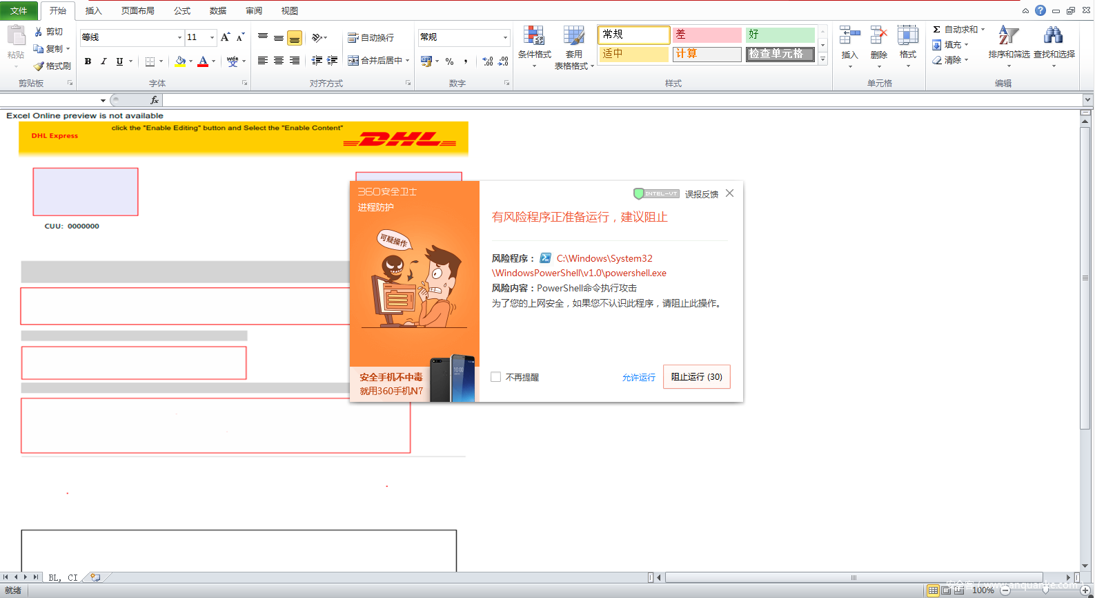 众所周知,在外贸、金融行业,跨国物流是白领们的工作日常,收件箱每天收到雪花般飞来的国际快递单邮件。而360安全大脑经过监测发现,此次泛滥的Gozi银行木马,就是通过日常邮件,伪装成极具迷惑性的DHL快递单的钓鱼Excel文档进行传播。用户一旦中招,木马成功入侵进出口贸易企业、大型金融机构计算机系统,就能窃取电脑中存储的银行帐户、浏览器凭证等机密信息。