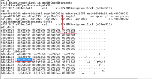 微软的补丁修改中直接将xxxMNOpenHierarchy中HMAssignmentLock触发函数前设置了null监控,防止传入对应null地址。