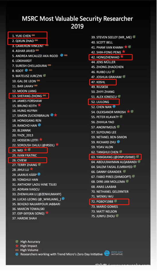 (微软发布2019 MSRC全球最具价值安全精英榜)