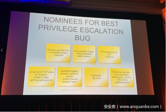 (颁奖现场:The Pwnie Awards“最佳提权漏洞奖”候选提名)
