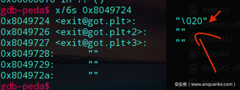 需要修改的地址就几个,第一个就是几个载入文件,下面需要修改的就是“exit_got”和”vuln_addr”2个函数,地址为,如图: