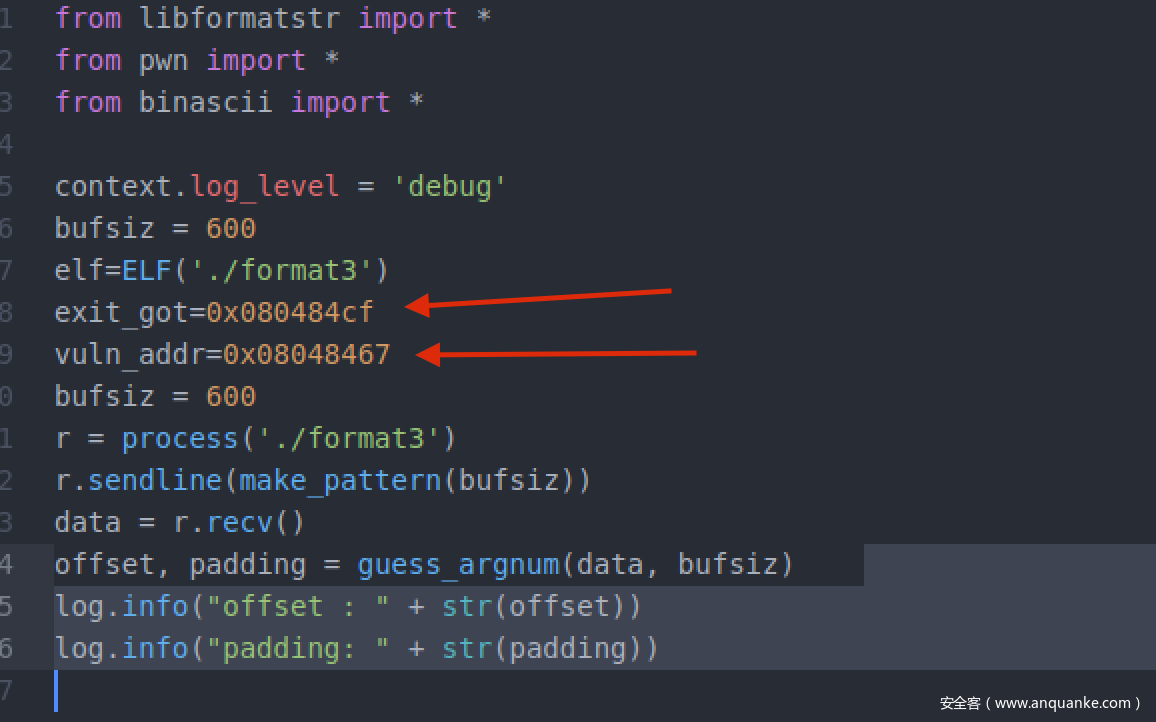 输入“%x”也是一样,存在格式化漏洞,下面我们还是找偏移量,还是使用上篇文章的python程序完成,但是需要修改一下,