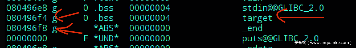 上图中可以看到“target”的起始地址到“_end”的值,中间还有4个位的空白地址,这些其实都是可以直接写入的
