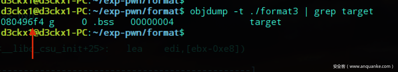 至于这个是不是正确的,大家可以使用上个level的算偏移的值来算一下,小弟算过。其实是对的,所以这里就不浪费大家时间了,下面我们跟上面一样还是找到“target”的地址,这里大家也可以拉到IDA里完成,我就不演示了,如图: