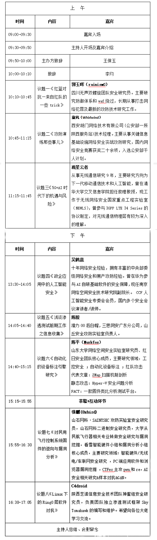 支持单位:DEFCON GROUP 010、百度安全、兰州大方电子有限责任公司、极棒、西安胡门网络技术有限公司(公安部一所陕西服务站)、补天、山丘安全攻防实验室