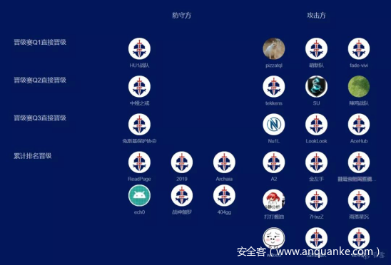 攻防团队通过晋级赛,争取决赛名额。晋级赛共有三场比赛,分别为Q1、Q2、Q3。更详细的比赛关系,请看此帖:https://bbs.pediy.com/thread-249064.htm